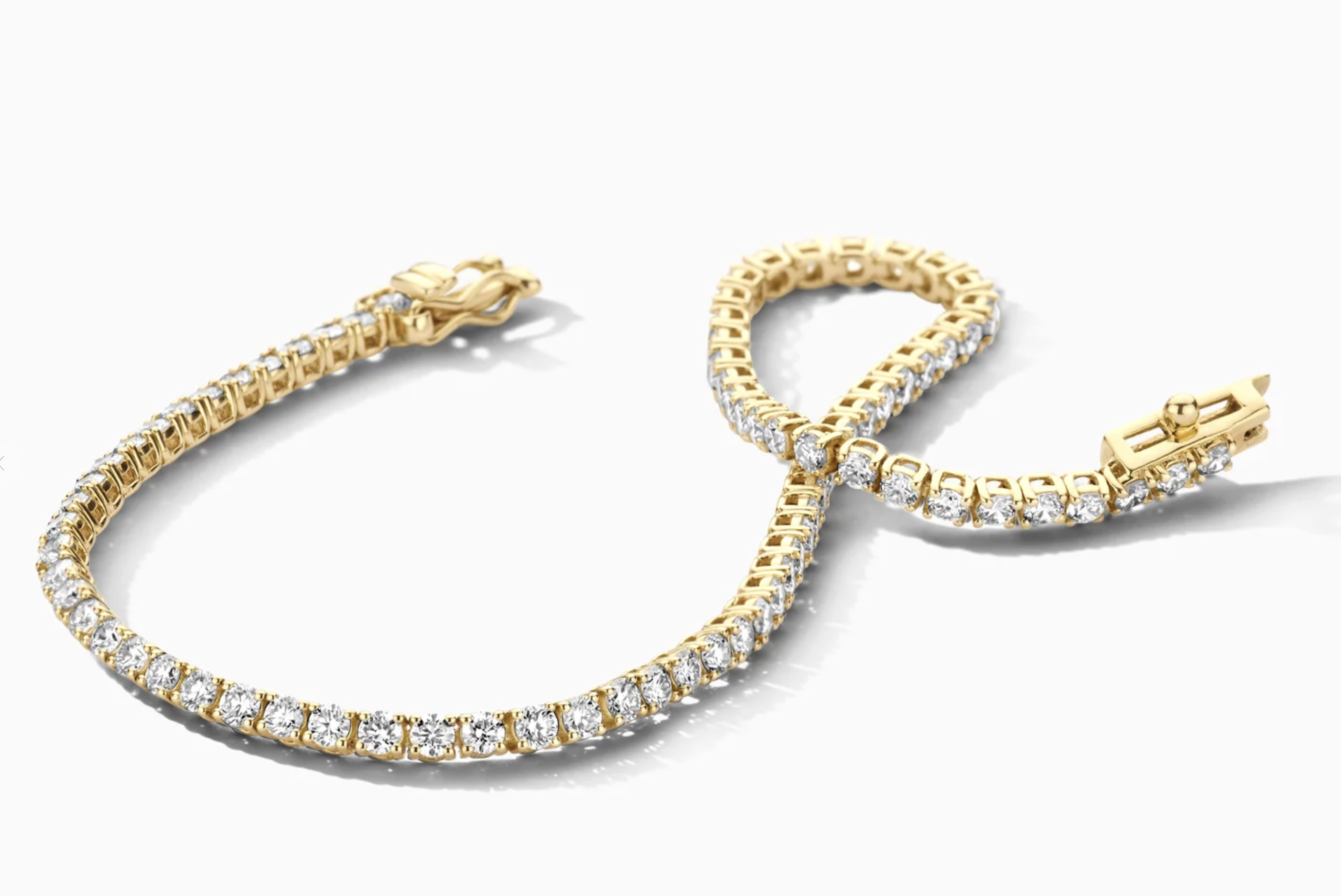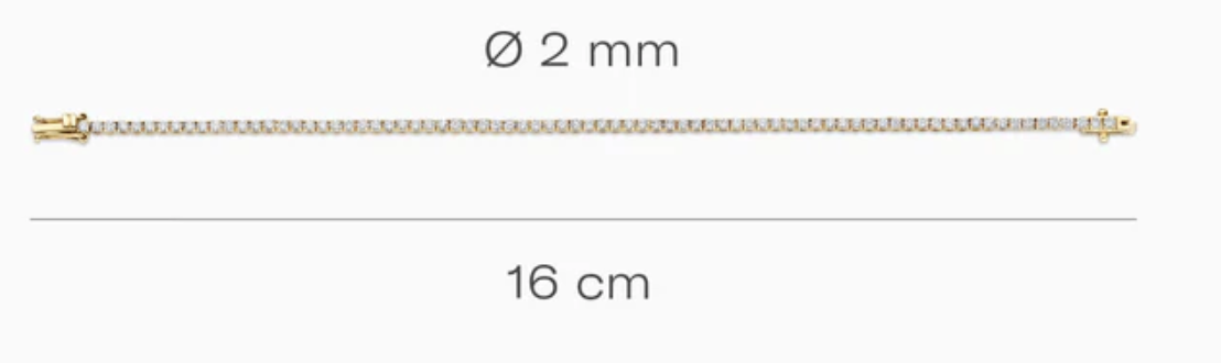Deze armband van 14k geelgoud is rondom bezet met sprankelende lab-diamonds in chaton-zetting. Het totaal karaatgewicht van de diamantjes is 2,16 en de lengte van de armband is 16 cm. Prachtig alleen of in combinatie met een ring en/of collier met lab-diamonds uit onze collectie.