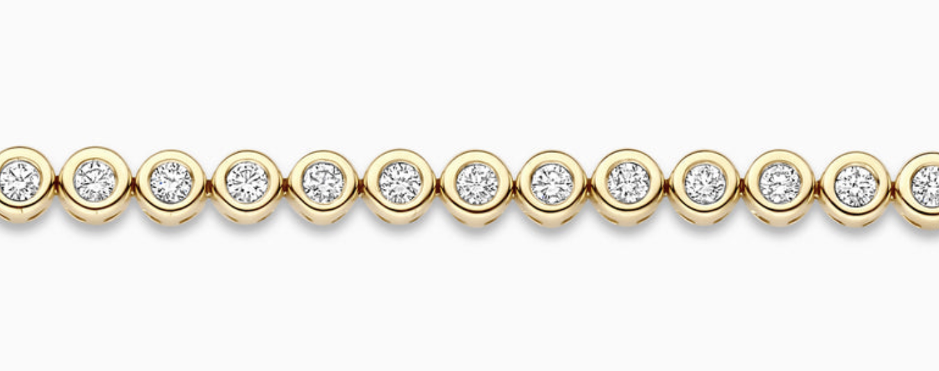 Deze 14k geelgouden armband met lab-diamonds in gladomzetting is een geraffineerd statement. Het totaal karaatgewicht van de diamantjes is 1,51 en de lengte van de armband is 17 cm. Prachtig te mixen en matchen met een ring en/of collier met lab-diamonds uit onze collectie.