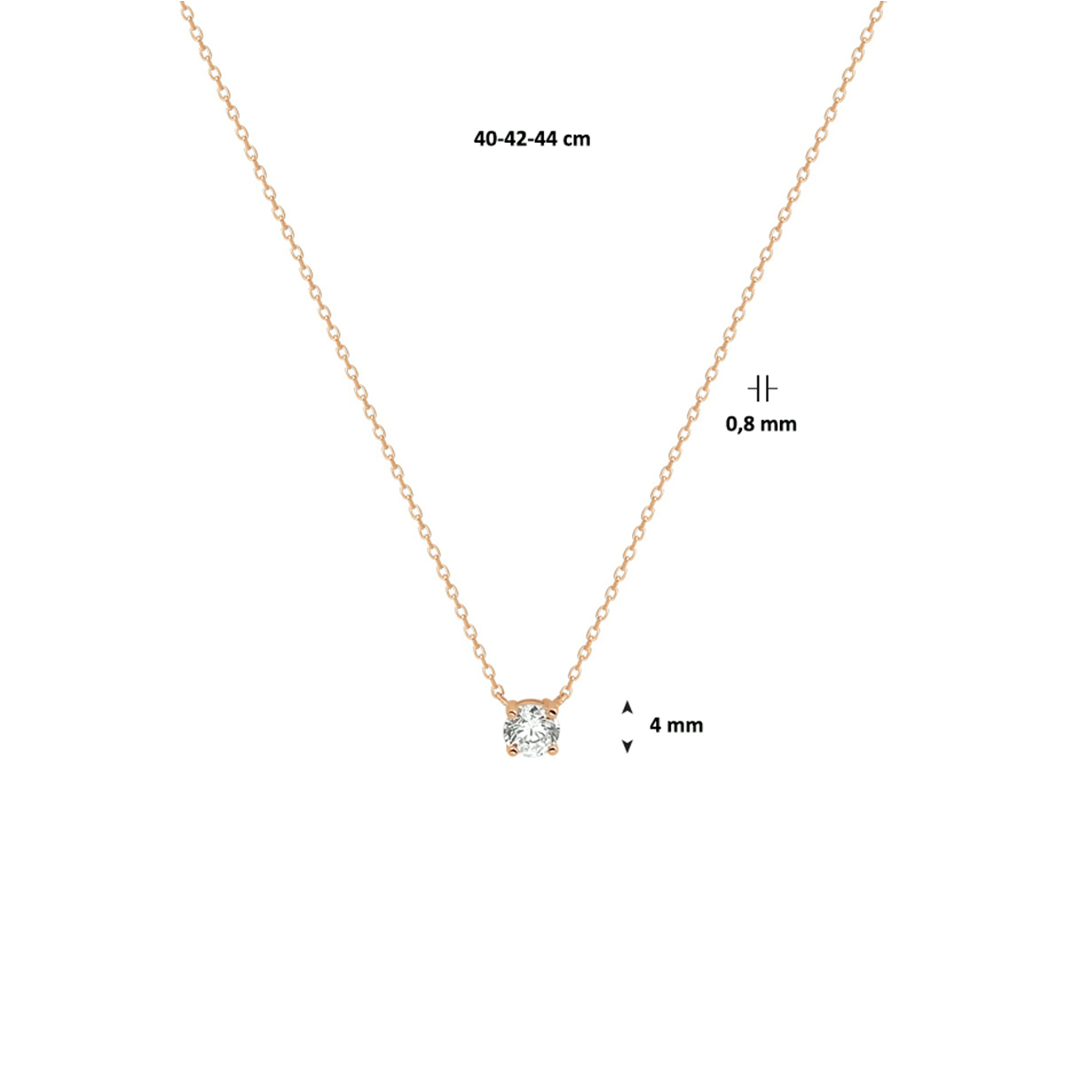 Beschrijving: Rosegouden anker collier uitgevoerd met een schitterende zirkonia. Een goede garderobe begint bij de basis en ditzelfde geldt voor een tijdloze sieradencollectie! Dit basic collier met draaglengtes van 40 42 en 44cm past bij iedere outfit en is met veel andere sieraden te combineren.