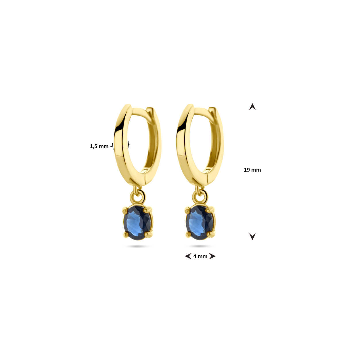 14k Geelgouden klapoorringen uitgevoerd met een blauwe saffier. De klapoorringen hebben een totale hoogte van 19mm.