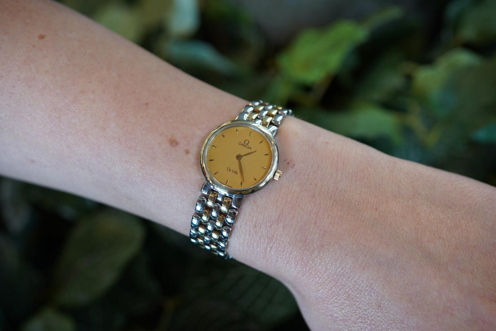 Tijdloos en klassieke Omega de Ville dameshorloge te koop! Dit prachtige horloge heeft recent onderhoud gehad & kast + band zijn volledig opgemaakt. Voorzien van nieuwe batterij en wordt verkocht met 1 jaar garantie. Originele vouwsluiting & band, het glas is zonder beschadigingen en super scherp.
