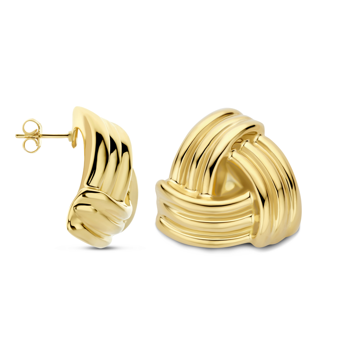 Geelgoud op 925 zilveren oorknoppen met een afmeting van 26x27mm. Geen garantie op de plating.