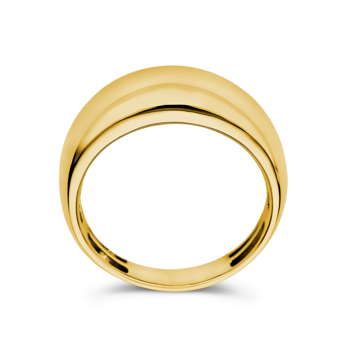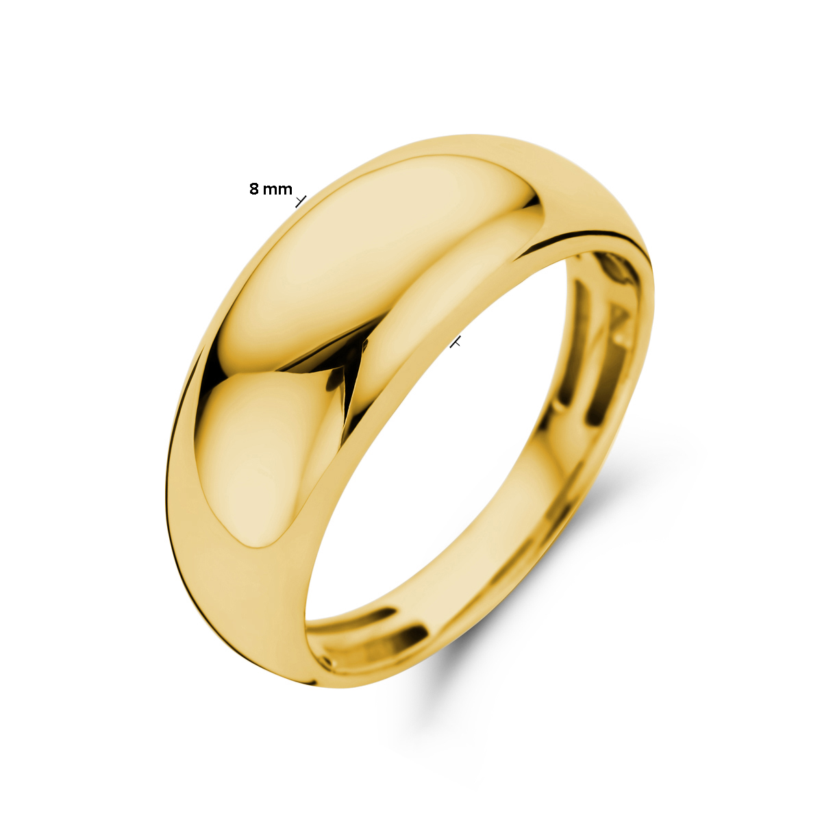 14k Geelgouden ring met een breedte van 8mm. De ring voelt comfortabel aan door de opengewerkte bodem.