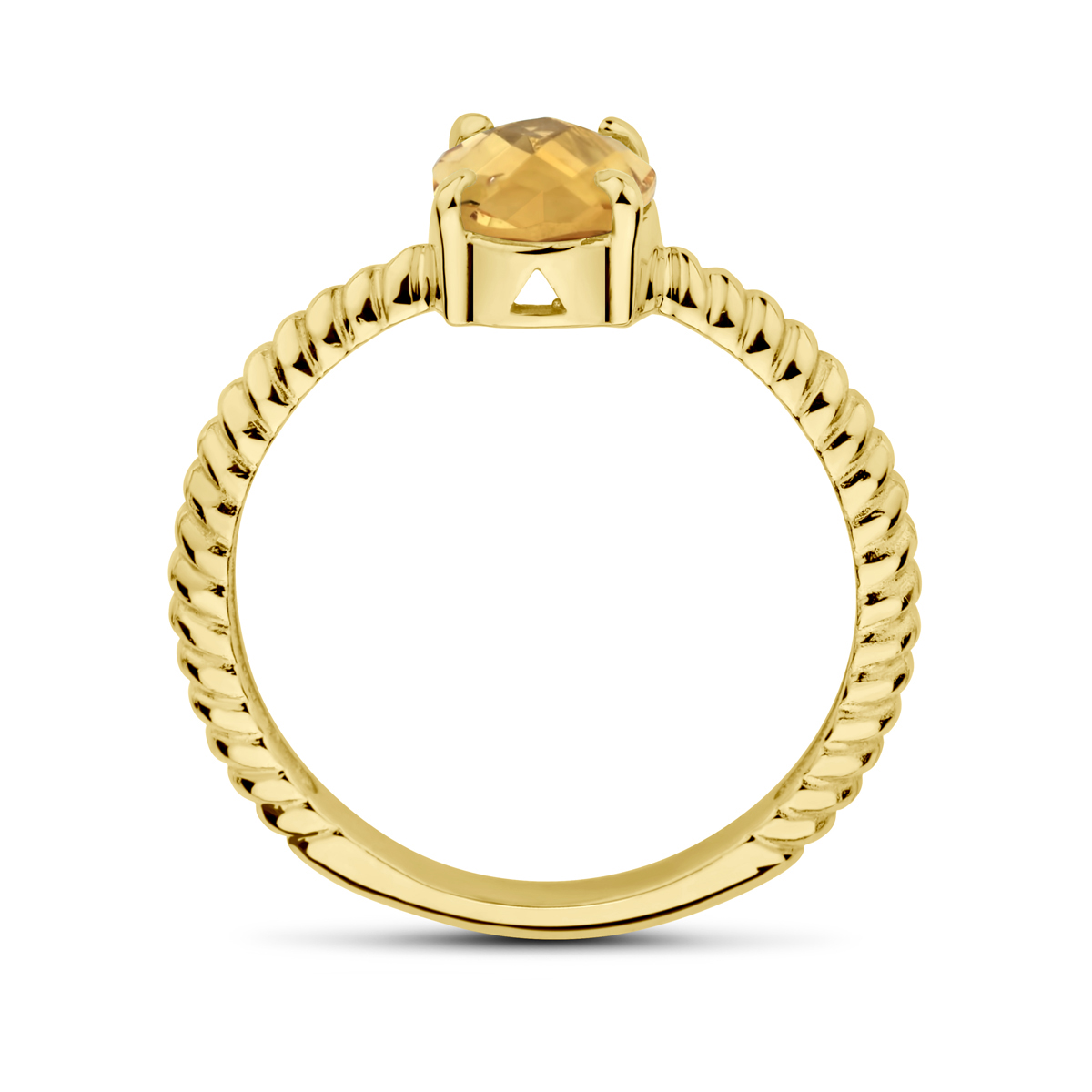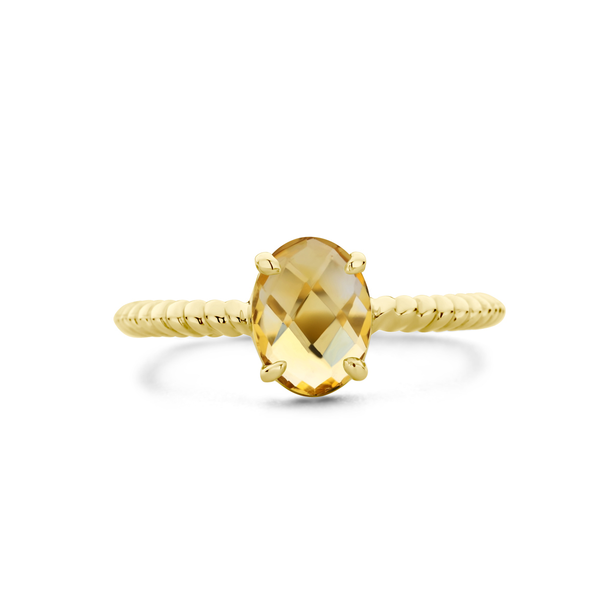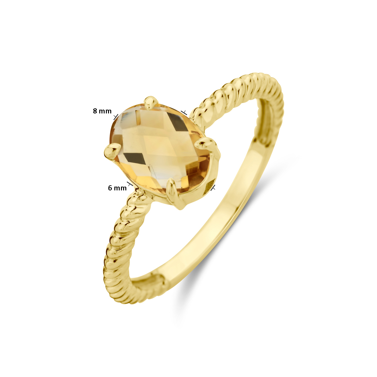14k Geelgouden ring uitgevoerd met citrien. De steen heeft een afmeting van 8x6mm.