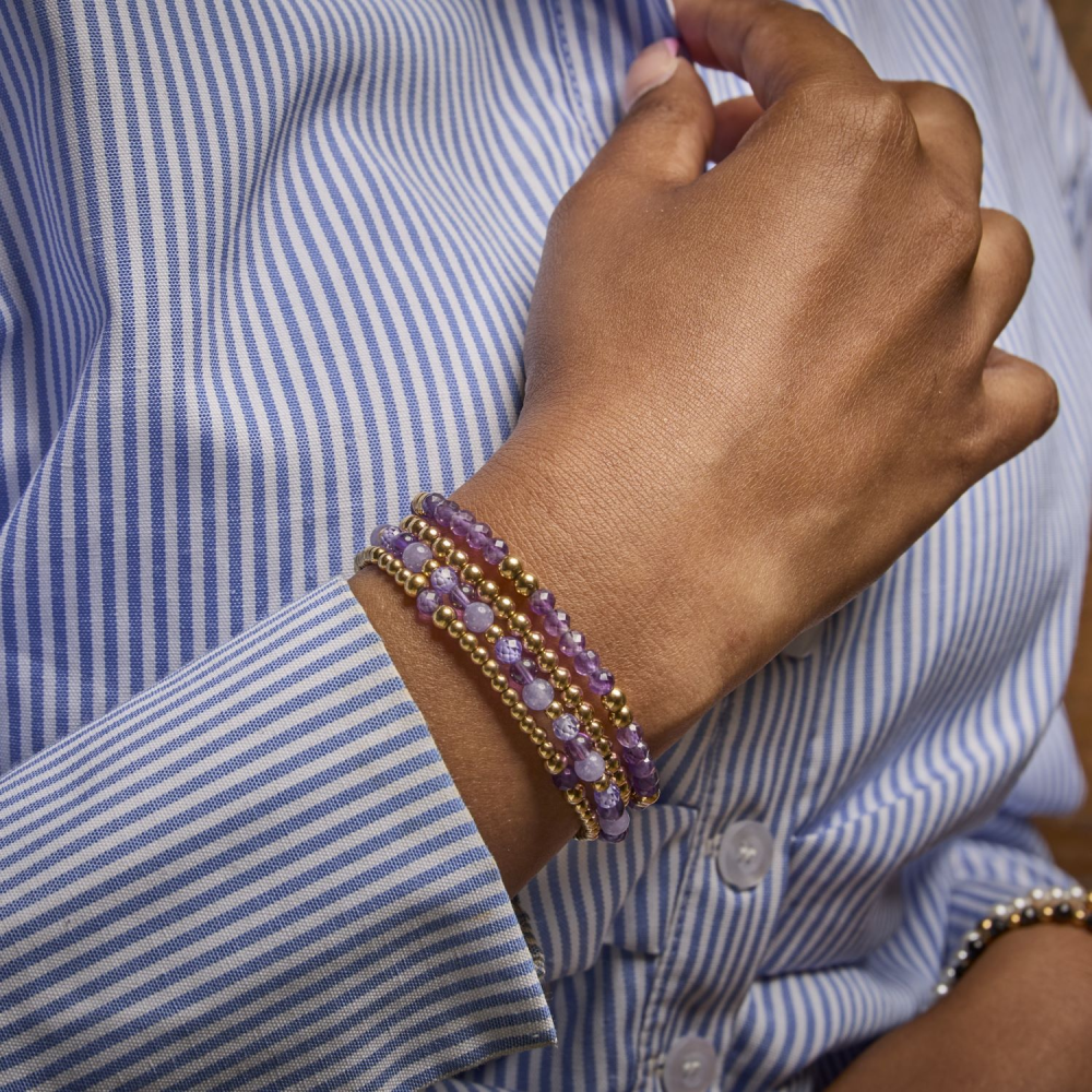 Armband van het merk Rebel & Rose. De armband heeft een hoogwaardige elastische stretch koord, met 4mm van Amethist, RVS ion-gold plated.