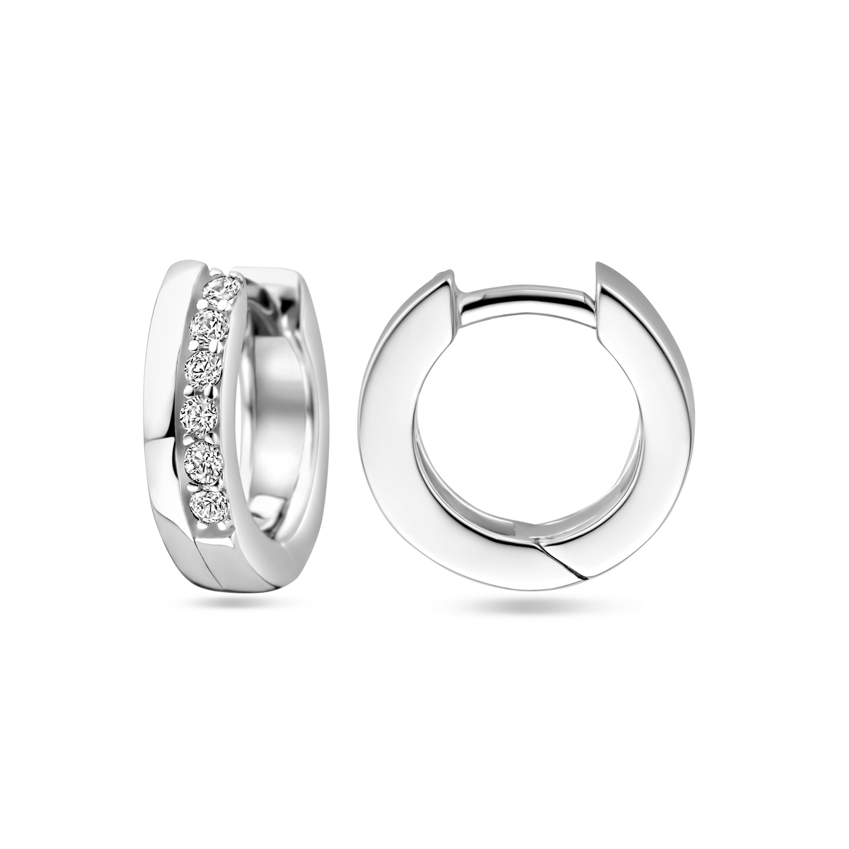 Gerhodineerd 925 zilveren klapoorringen met zirkonia. De klapoorringen zijn onderdeel van een set.