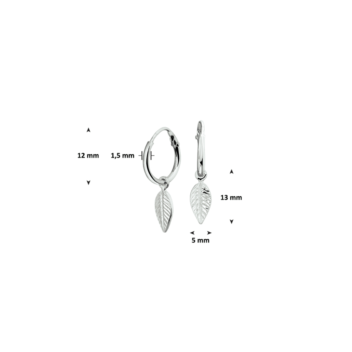 Gerhodineerd zilveren oorringen met een afmeting van 12x1.5mm uitgevoerd met veren van 13x5mm.