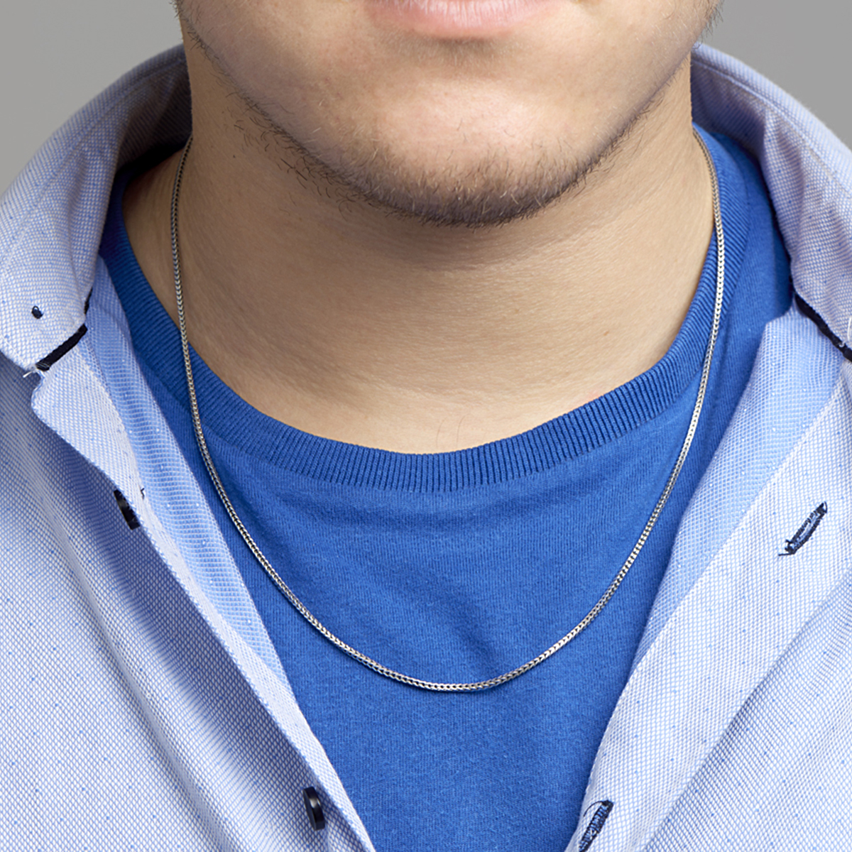 Geoxideerd zilveren collier met een vossestaart schakel en een stevige karabijn sluiting. Het collier heeft een draaglengte van 50cm. De schakelbreedte is 1.6mm.